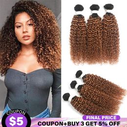3 Bundles Weft Curly Hair 27 Dark Blonde Color Brazilian Kinky Curly Human Hair Ebay